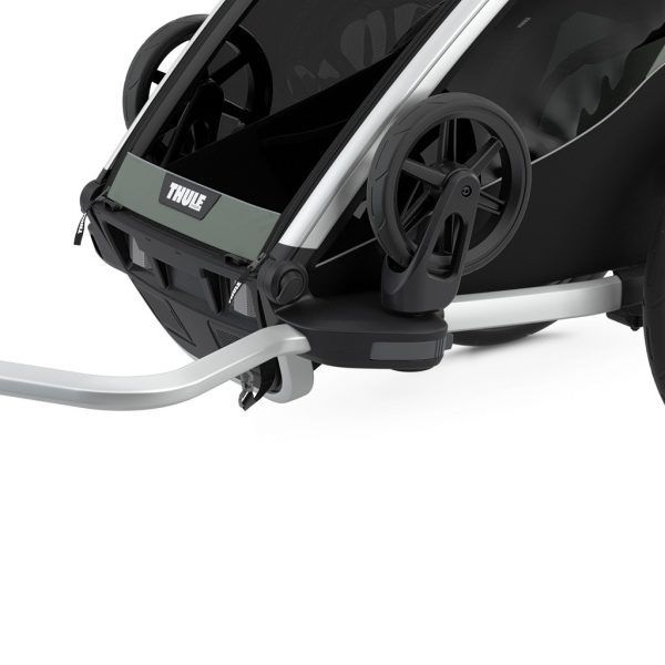 • Sustav Thule Click n’ Store – tijekom promjene aktivnosti, komplet za dječja kolica, kolica za trčanje i prikolicu za bicikl praktično se pohranjuje na samoj prikolici