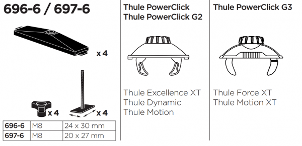 - Zamjenjuje standardni sustav postavljanja Power-Click Thule krovne kutije